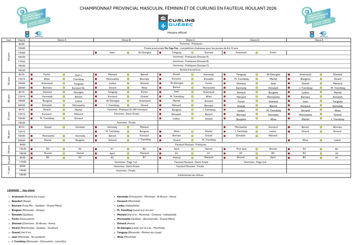 Cliquez ici pour ouvrir l'horaire du tournoi.